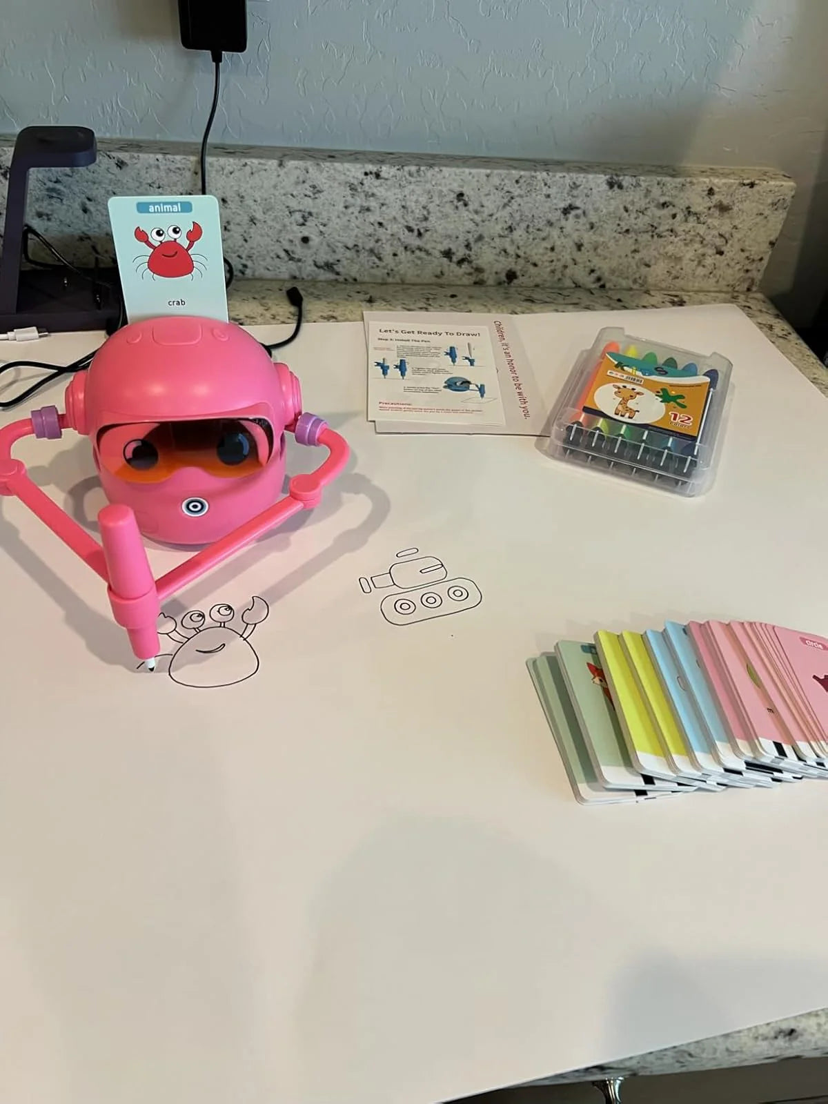 Ja! ArtieBot är helt skärmfri. Barnet sätter i ett ritkort, och roboten ritar automatiskt steg för steg. Inga appar, ingen bluetooth – bara kreativ lek som håller fokus och fantasi igång.